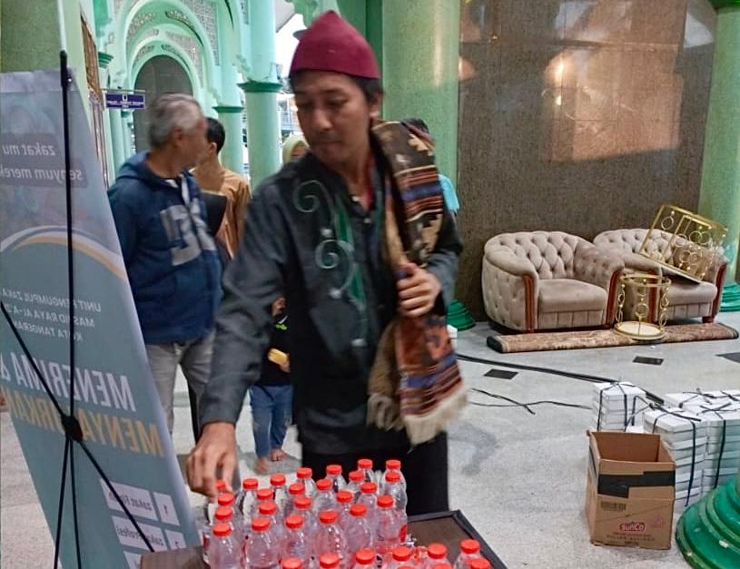 Sebanyak 200 kotak makanan dibagikan kepada jamaah yang akan melaksanakan ibadah berbuka puasa di Masjid Raya Al Azhom. Penyaluran takjil ini diharapkan dapat membantu jamaah yang sedang menjalankan ibadah puasa sekaligus mempererat kebersamaan di tengah masyarakat.